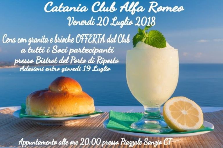 Il 20 Luglio 2018 il Direttivo del Catania Club Alfa Romeo ha il piacere di invitare tutti i Soci del Club a trascorrere un venerdi sera diverso dal solito. Ci riuniremo come ogni venerdi sera presso il Piazzale Sanzio di…